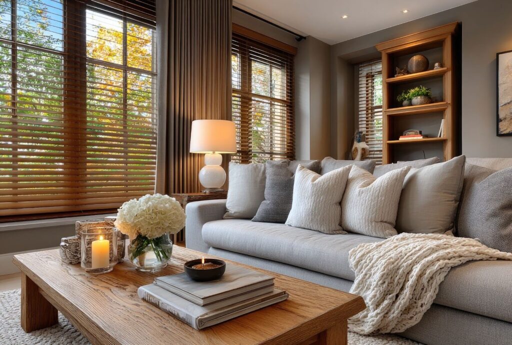 - Pair warm blinds (beige, tan, natural wood tones) with warm walls